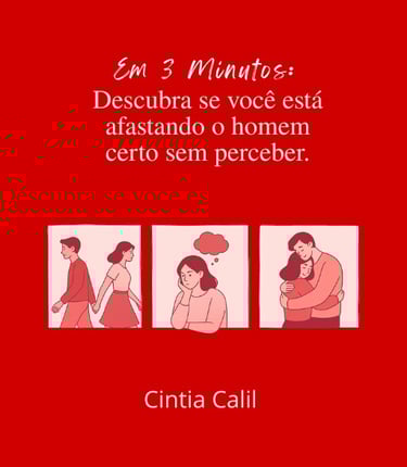 Com o e-book “Em 3 Minutos: Descubra se Você Está Afastando o Homem Certo Sem Perceber”, você vai adquirir clareza e autoconfiança para avaliar melhor as oportunidades, entender suas próprias necessidades e evitar cair em relacionamentos que não te elevam ou não te fazem bem.
